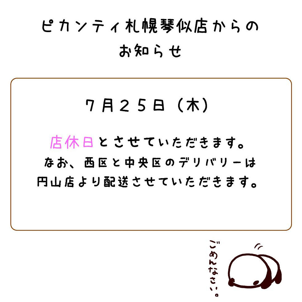 ピカンティ琴似店 店休日のお知らせ
